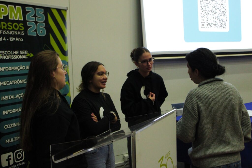 Um dos momentos mais enriquecedores foi o testemunho de alunas do IPS, que partilharam a sua experiência académica, percursos pessoais e desafios da vida no ensino superior, proporcionando uma visão real e próxima do que é estudar nesta instituição.
