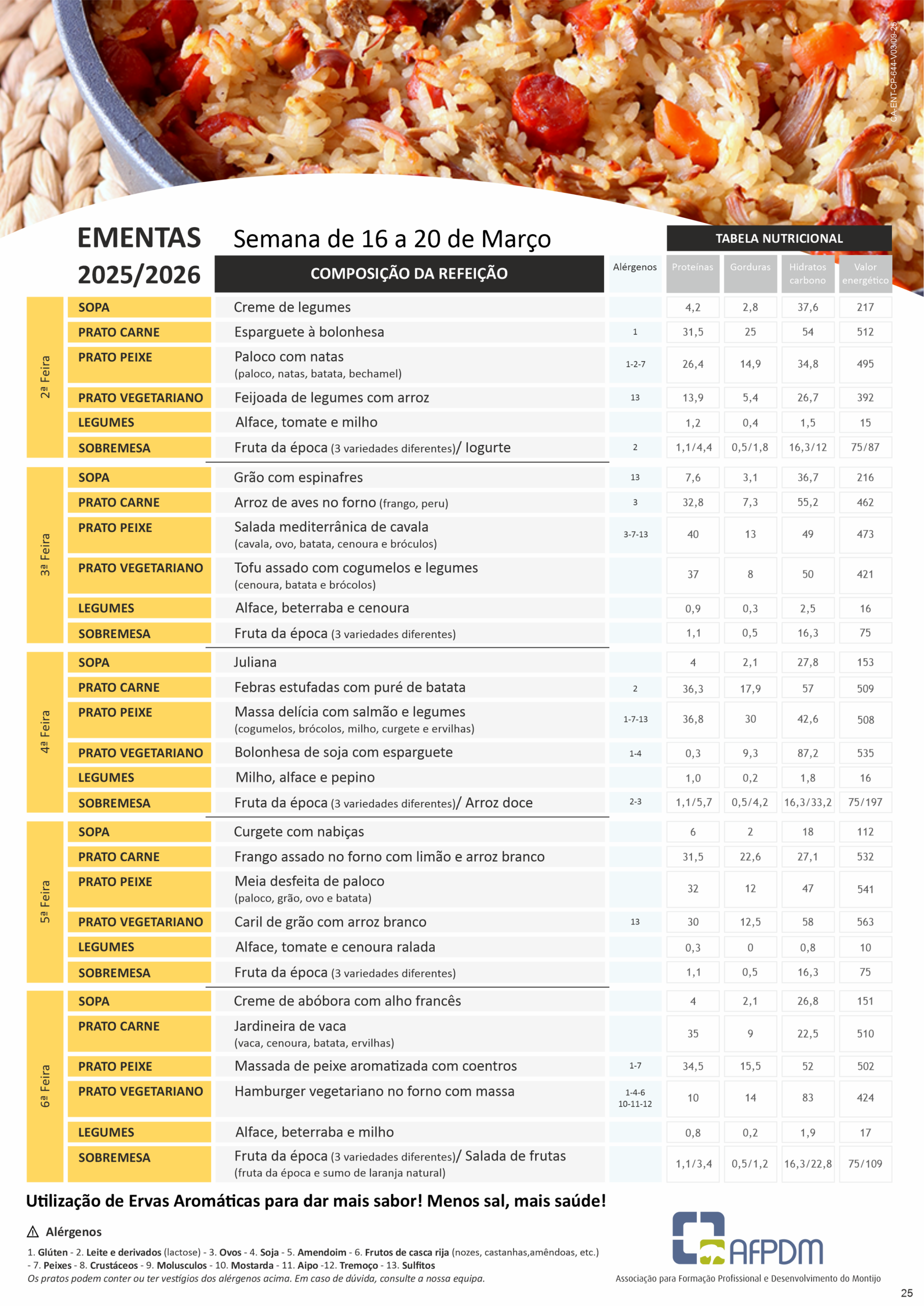 Ementas 9 a 13 de Março de 2026 16 a 20 de Março de 2026 Telefone 21 231 38 62 (Cham. p/rede fixa nacional) Morada Rua José de Almada Negreiros, nº217 Afonsoeiro2870-442 Montijo Email [email protected]
