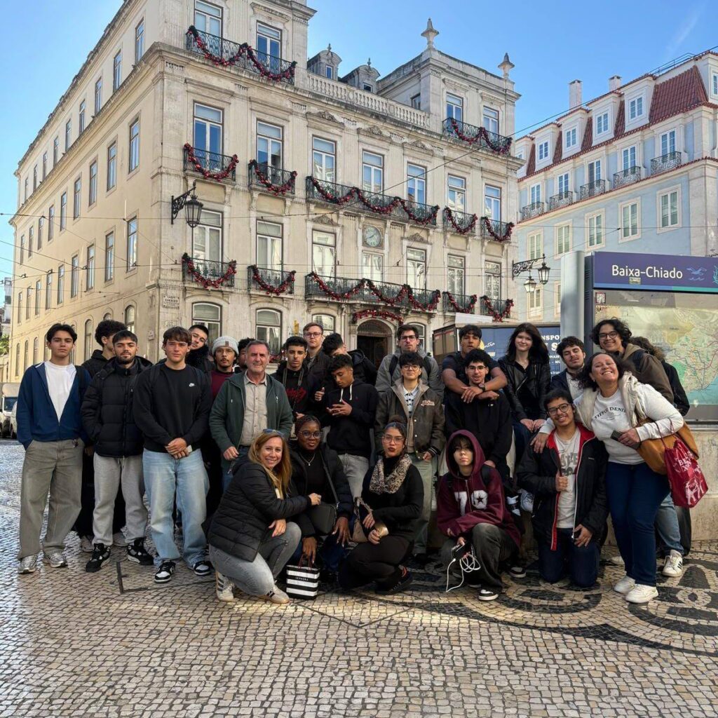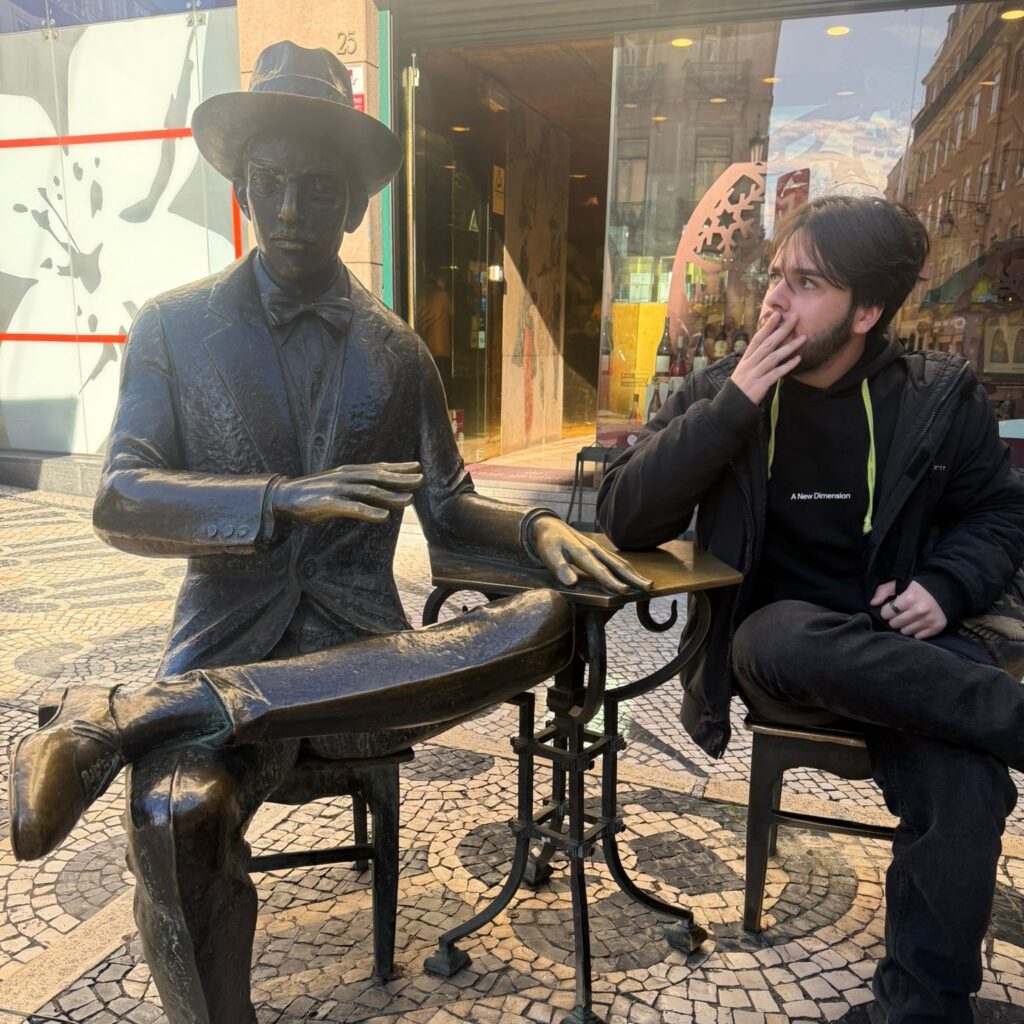 No passado dia 27 de novembro, as turmas do 3.º ano de GPSI e Multimédia realizaram uma visita de estudo a Lisboa, no âmbito da disciplina de Português. Durante a manhã, percorreram a Baixa e o Chiado, passando pelo Café A Brasileira e por vários locais marcantes da vida de Fernando Pessoa.