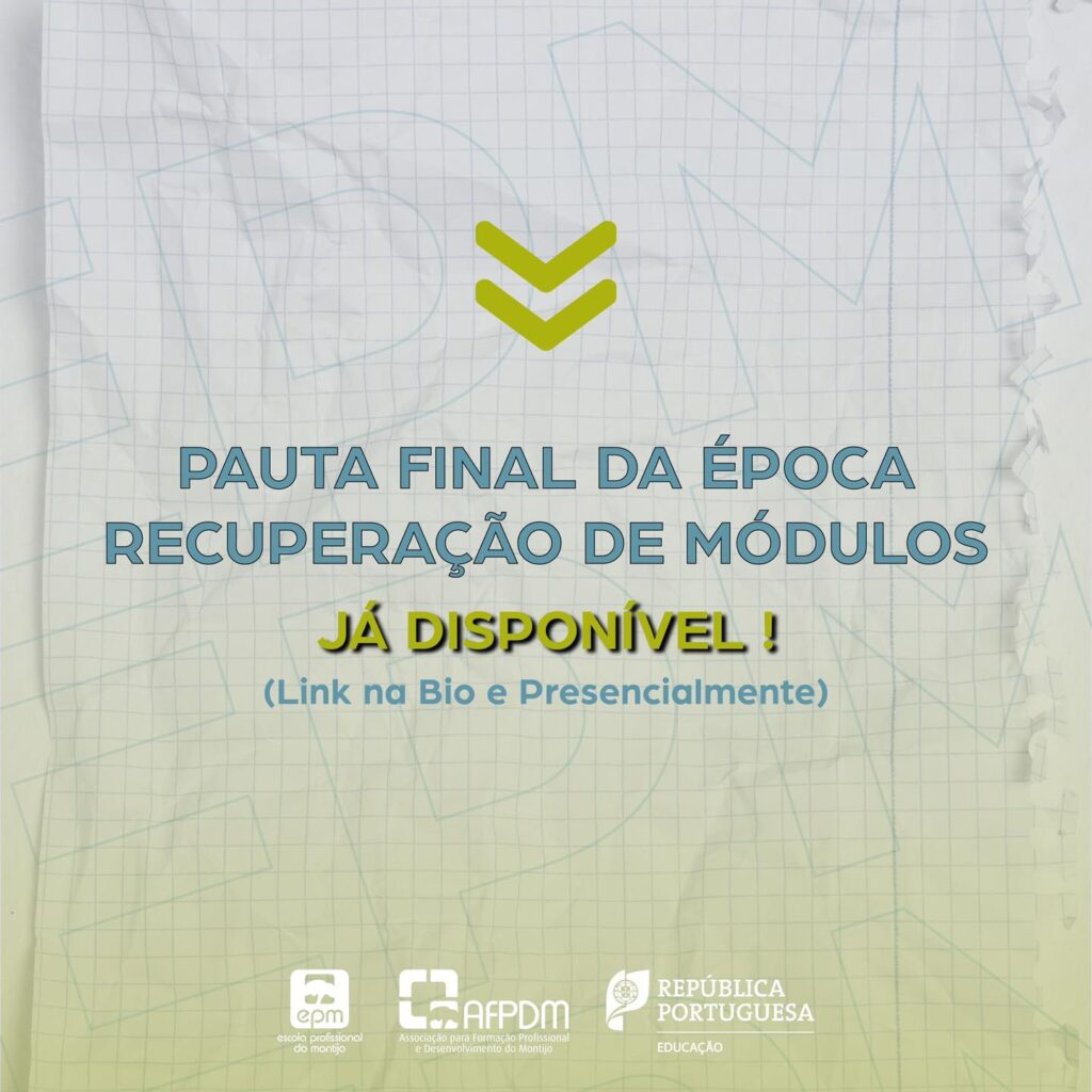 Pauta de Avaliação Final – Época de recuperação Dezembro Jan 17, 2026 | Informações Pauta de Avaliação Final – Época de Recuperação de Módulos de dezembro Link de consulta: https://epmontijoedupt-my.sharepoint.com/personal/comunicacao_epmontijo_edu_pt/_layouts/15/onedrive.aspx?id=%2Fpersonal%2Fcomunicacao%5Fepmontijo%5Fedu%5Fpt%2FDocuments%2FSScanner%5FCo26011609560%2Epdf&parent=%2Fpersonal%2Fcomunicacao%5Fepmontijo%5Fedu%5Fpt%2FDocuments&ga=1